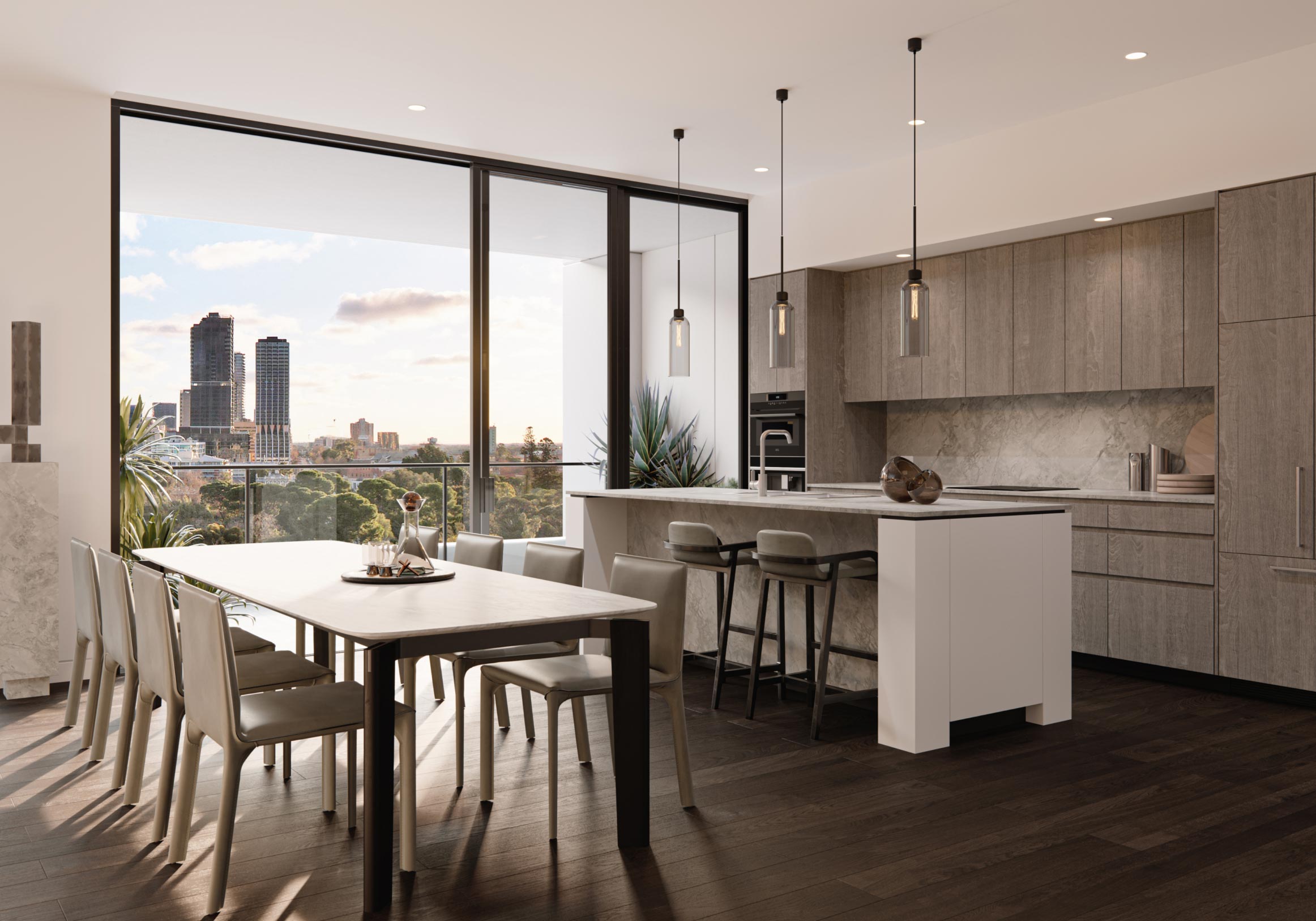 Located at 9 Dequetteville Terrace, Kent Town, this boutique 12‑storey development comprises 61 luxury residences and premium commercial space, designed to redefine city‑fringe living with elevated amenity, panoramic parkland and city views and a commitment to sustainability.