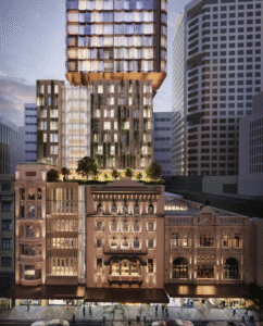 Located in Sydney’s CBD at the former City Tattersalls Club site (194‑204 Pitt Street), this landmark redevelopment blends heritage‑listed club architecture with a contemporary 50‑storey tower delivering 241 luxury residences and a boutique hotel component.
